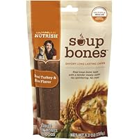 First off, I have to give kudos to Rachael Ray for making products without byproducts and artificial colors. I have a 4 year old pug who loves anything rawhide but has some allergy problems, so I've been trying out other products to see what can fit her needs.She is currently gnawing on the last of the 3 chews that came in the pack I bought (all this flavor) the "soup bones" smell pretty tasty, and she appears to love them, but my chief complaint is that these bones are supposedly "long lasting". I gave my pug the soup bone 1 minute before I started typing, and without taking any breaks from where I am currently typing at (about 2 minutes into this review), the bone is 3/4 gone. Knowing her, and the noises I'm hearing, she's demolishing that last quarter, putting it at roughly a 4 minute treat. To me, that is not very lengthy of time.