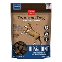 Dynamo Dog Functional Treats (Hip & Joint Formula) are Grain Free, Gluten Free, and made with quality all-natural ingredients including: pork, chickpea flour, potato flour, tapioca starch, maple syrup, bacon, cheddar cheese, carrots, apples, spinach, cherries, sweet potatoes, cranberries, yucca, salmon oil, and even green-lipped mussel. They also contain Glucosamine HCL and Chondroitin Sulfate, which help relieve arthritis pain and restore cartilage.