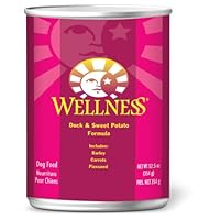 My Shiba Inu was tested and found to be allergic to a number of environmental allergens the vet recommended he also be put on a hypoallergenic dry dog food but despite its' high cost, my dog would smell his food and walk away. So, in desperation, I ordered a duck and potato canned dog food at first, when I added it to his dry dog food, he would eat his food but by the time he had gone through a couple of cans, he started to ignore his food again. So when I looked on Amazon, I found this Wellness brand and decided to give it a try. The shipment arrived yesterday so I opened a can and of course, my dog came over to check it out. This one is very wet and dark in color (compared to the other canned dog food which seemed to have a lot of potato). It smelled OK and my dog agreed because he waited until I prepared his dinner and ate it all. Will have to see if he still wants to eat this in a few weeks.