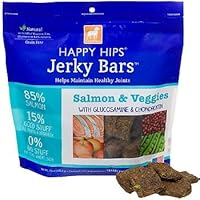This has earned a 5 Star rating. I recommend this no grain, low glycemic treat for all dogs including dogs with food allergies who cannot tolerate corn, soy or potatoes. This treat promotes healthy hips and joints because of the added Glucosamine Hydrochloride and Chondroitin Sulfate. The Salmon and Veggie Bars are my dog's favorite.